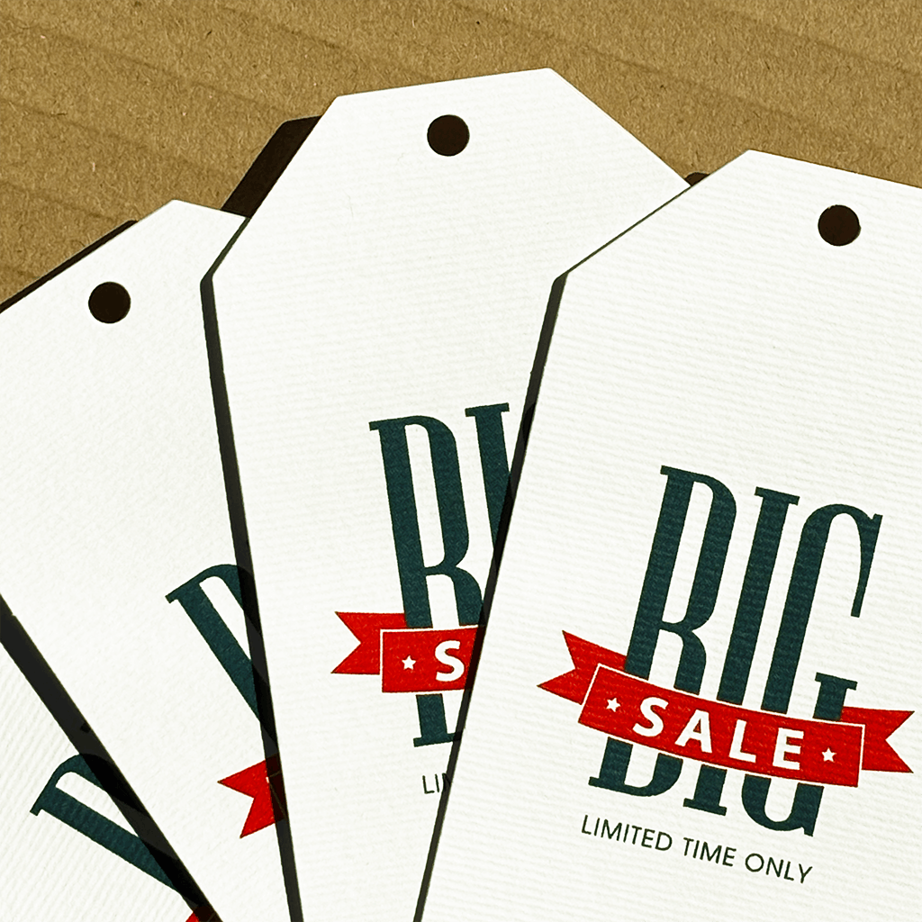 Metki na papierze fakturowanym. Papiery z teksturą: len, płótno, prążki.