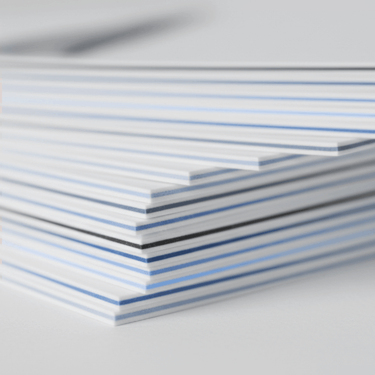 Wizytówki klejone z trzech warstw papierów, które zapewniają większą sztywność i efekt premium.