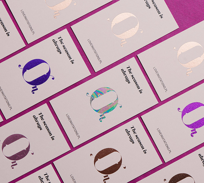 Wizytówki uszlachetniane folią na gorąco (hot-stamping), nadające projektom luksusowy i wyrazisty charakter.